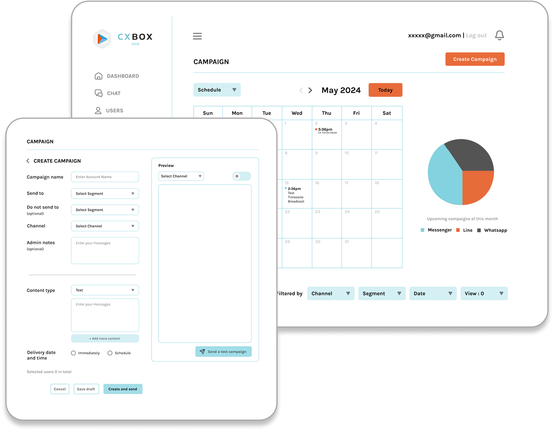 With CXBOX Hub, you can send targeted messages, build personalized interactions, track results, and access valuable insights — all designed to enhance customer relationships.
