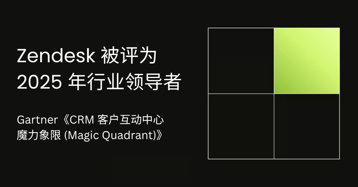 我们代表我们和伙伴 Zendesk 很自豪地宣布,Gartner 在其《2025 年 CRM 客户互动中心魔力象限™(Magic Quadrant™ for the CRM Customer Engagement Center)》报告中,将 Zendesk 评为“领导者(Leader)”,以表彰我们在塑造客户支持未来方面所产生的深远影响。 在 Zendesk,我们坚信:真正的解决方案(real resolutions)才是卓越服务的定义。这项信念,是我们一切创新的核心。