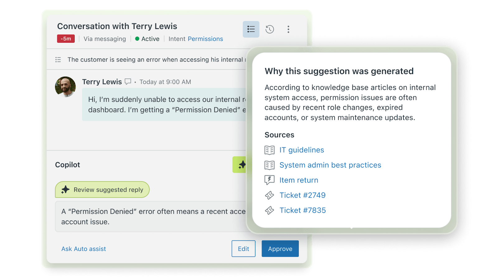 - Agent Copilot(智能协作助手)实时提供洞察、行动建议与沟通语气提示,让客服人员专注于同理心与判断。